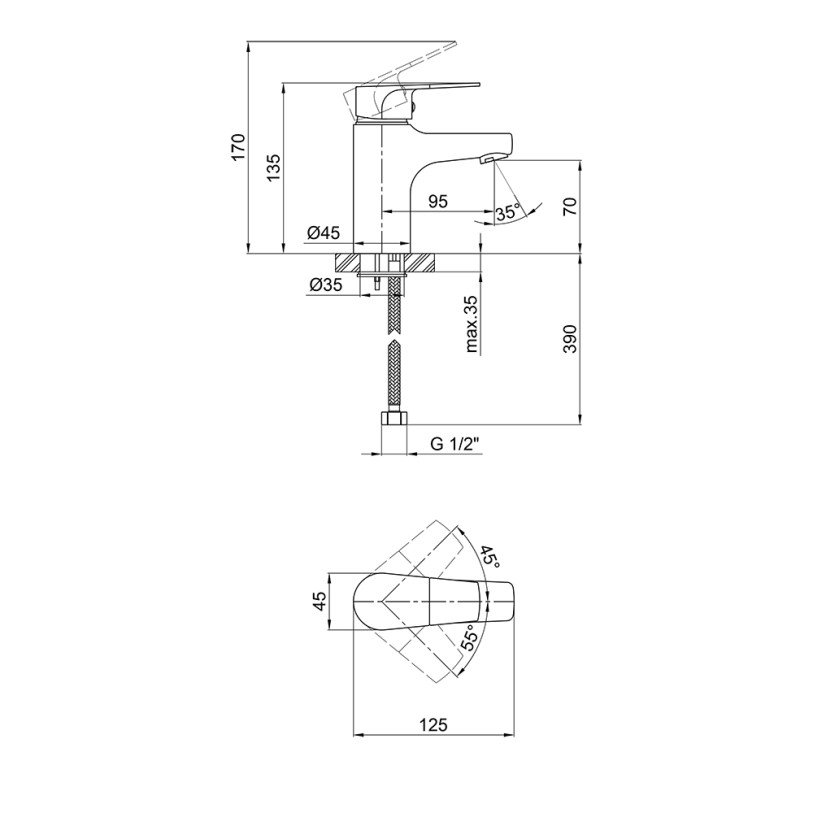 | Довжина виливу, мм | 95 |