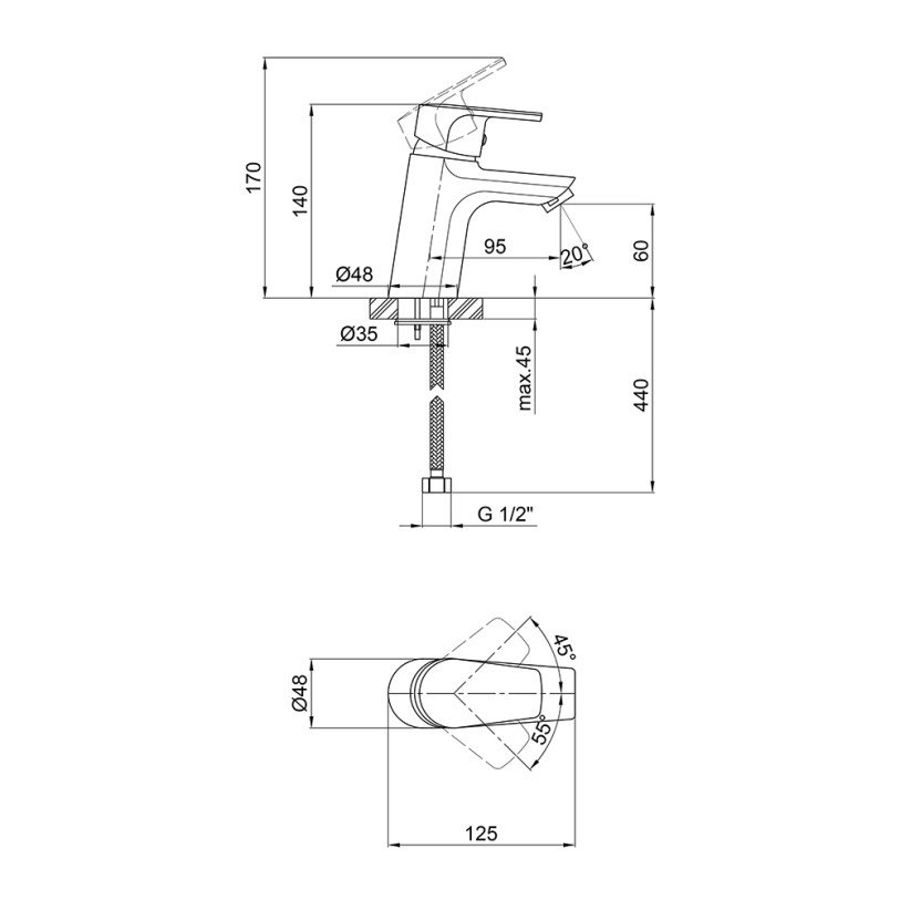 Змішувач для раковини Qtap Tenso CRM 001 виготовлений з високоякісної харчової латуні, яка стійка до впливу корозії, ударів і тріщин. Глянсове хромоване покриття не тільки підвищує довговічність змішувача, а й надає йому оригінальний зовнішній вигляд. Інтенсивність водного потоку та температура регулюються за допомогою переміщення важеля. Підключення води відбувається через гнучкі шланги з діаметром підмикання 1/2". Виконаний в сучасному стилі, який ідеально доповнить інтер‘єр санвузла.