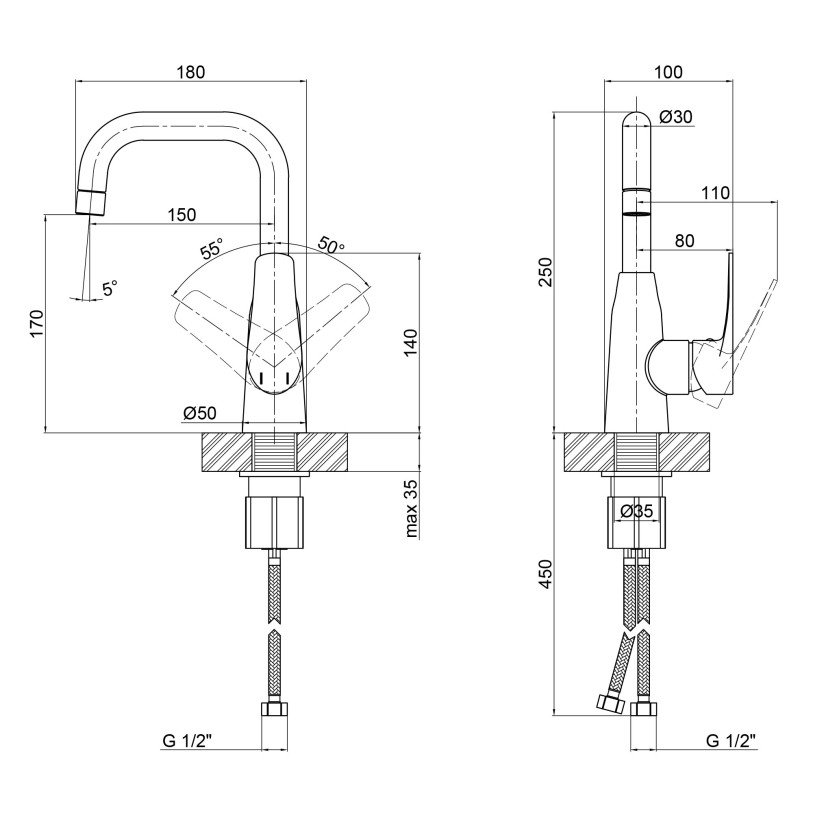 | Комплектація | Змішувач, гнучкий підвід, кріпильні деталі. |