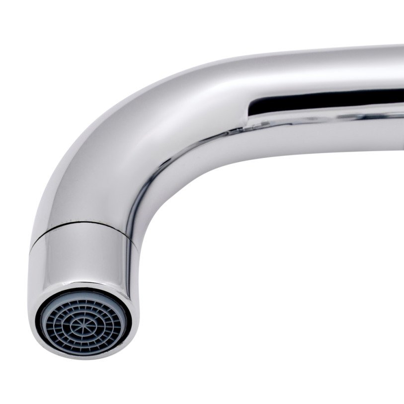 Змішувач для раковини Qtap Terezin 9024101FC виготовлено з високоякісної харчової латуні, що не схильна до корозії, стійка до ударів і появи тріщин. Глянцеве хромоване покриття не тільки підвищує довговічність змішувача, а й надає йому оригінальний зовнішній вигляд. Інтенсивність водного потоку і температура регулюються за допомогою переміщення важеля. Підключення води здійснюється через гнучкі шланги з діаметром підключення 1/2". Виконано в сучасному стилі.
