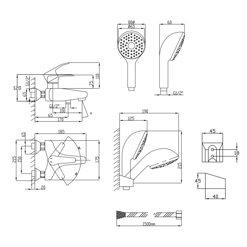 | Комплектація | Змішувач, лійка для ручного душу, душовий шланг, тримач для ручного душу, кріпильні деталі. |