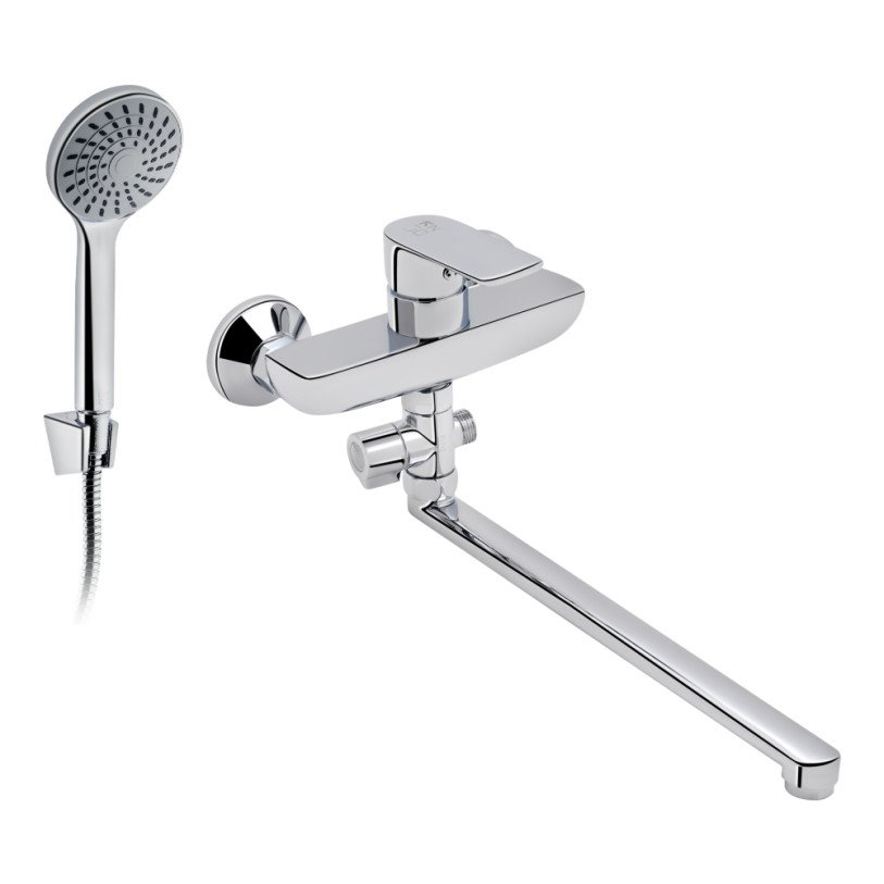 Змішувач для ванни Lidz (CRM) 23 48 005-2 New з довгим поворотним виливом виготовлено з цинку, укомплектовано кронштейном для ручного душу, душовим шлангом і лійкою. Завдяки якісному покриттю має міцну поверхню і привабливий зовнішній вигляд. Декоративні розетки приховають похибки встановлення на оздобленні кімнати. Напір води і її температура регулюються поворотом важеля в необхідне положення. Перемикання ванна/душ здійснюється за допомогою дивертора.