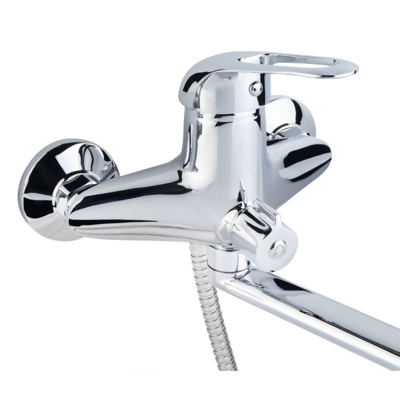 Змішувач для ванни Lidz (CRM) Cosmos 80 005-1 виготовлено із латуні, має довгий вилив і зручне руків‘я. Для вмикання подачі води досить підняти та повернути його в потрібне положення. Змішувач та тримач лійки монтуються на стіну за допомогою кріпильних елементів, які є в комплекті. Круглі хромовані розетки приховають похибки монтажу на обробці ванної кімнати. Перемикання на ручний душ виконується поворотним дивертором.