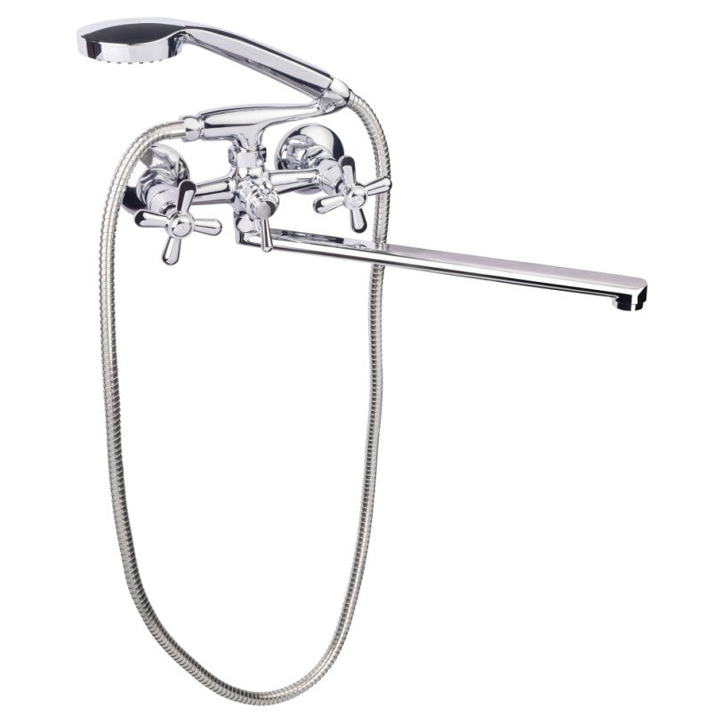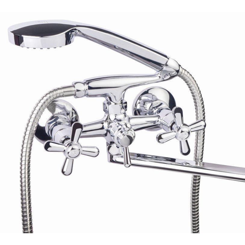 Змішувач для ванни Lidz (CRM) Dominox 15 143 з довгим поворотним виливом виготовлено з латуні, укомплектовано душовим шлангом і лійкою. Завдяки хромованому покриттю має міцну поверхню і привабливий зовнішній вигляд. Для включення потоку води передбачено два вентиля. Для перемикання на душ - дивертор. Настінний монтаж здійснюється за допомогою кріпильних деталей, які входять в комплект. Декоративні розетки приховають всі погрішності установки на оздобленні ванної кімнати.