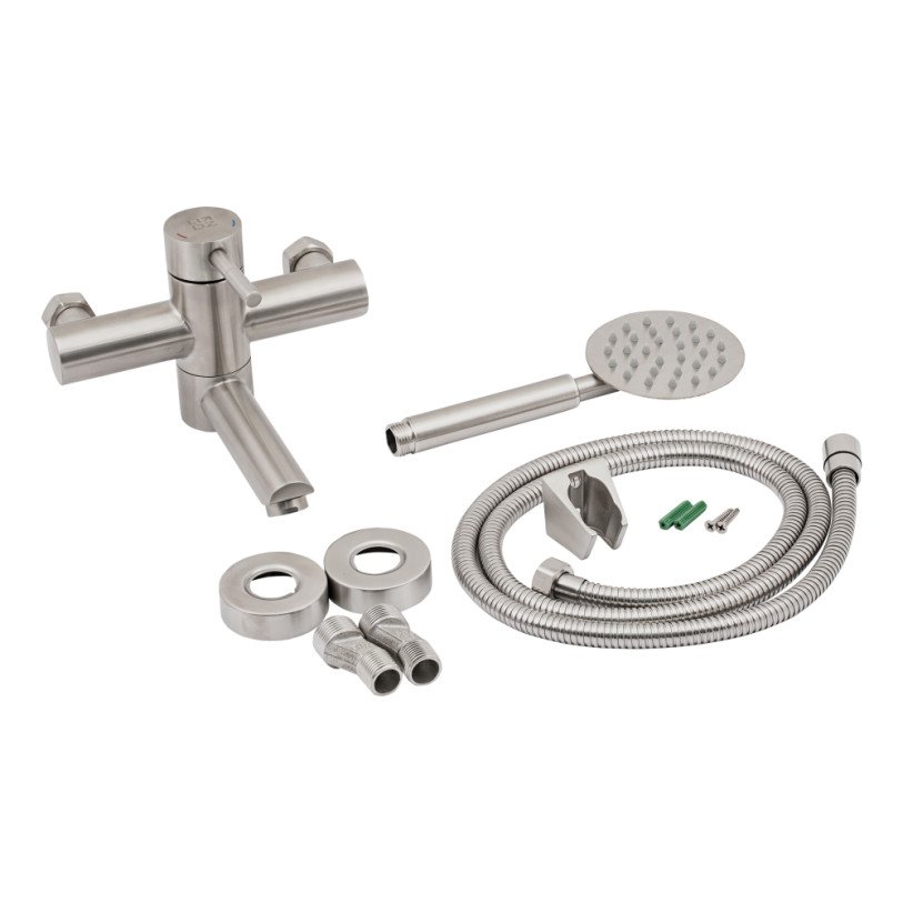 Змішувач для ванни Lidz (NKS) 12 32 006-1 виконаний з нержавіючої сталі, що гарантує тривалий термін експлуатації. Для вмикання подачі води досить підняти важіль і повернути його в необхідний бік. Змішувач монтується на стіну над ванною за допомогою кріпильних елементів, які комплектуються разом зі змішувачем. Круглі розетки приховають похибки установки на обробці. Тримач лійки також кріпиться на стіну. Таким чином, ваші руки будуть вільні під час прийняття душу.
