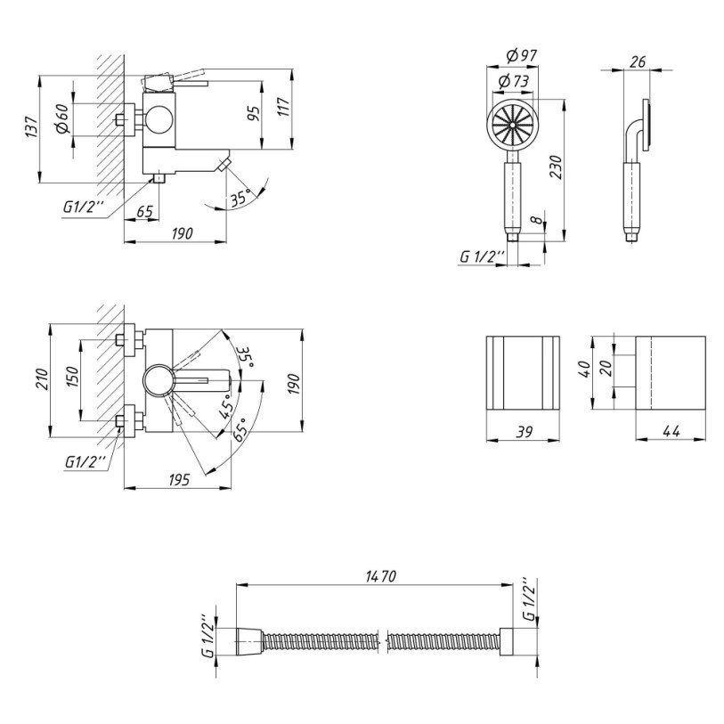 | Комплектація | Змішувач, лійка для ручного душу, душовий шланг, кронштейн для ручного душу, кріпильні деталі. |