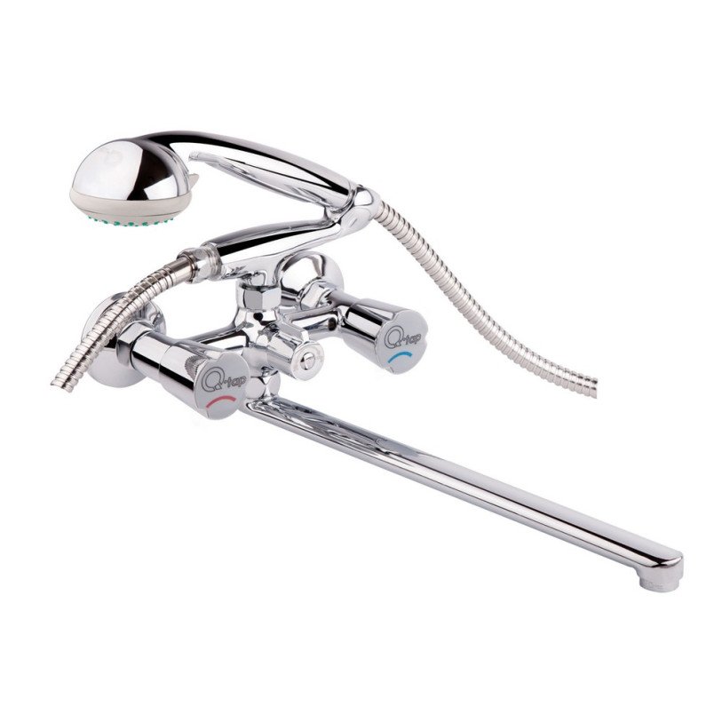 Змішувач для ванни Qtap Mix CRM 140 з інтегрованим шланговим під‘єднанням виготовлений з міцної та зносостійкої латуні з рівномірним хромованим покриттям золотого кольору, завдяки якому виріб має привабливий зовнішній вигляд й більш стійкий до механічних пошкоджень. У комплекті є лійка та душовий шланг. Подача води здійснюється за допомогою зручних вентилів з маркуванням холодної та гарячої води, а перемикання на душовий режим - поворотним дивертором.
