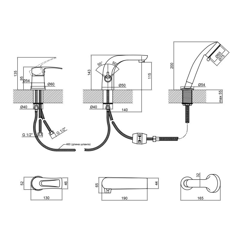 | Комплектація | Змішувач, лійка для ручного душу, душової шланг, гнучка підводка, якір, кріпильні деталі. |